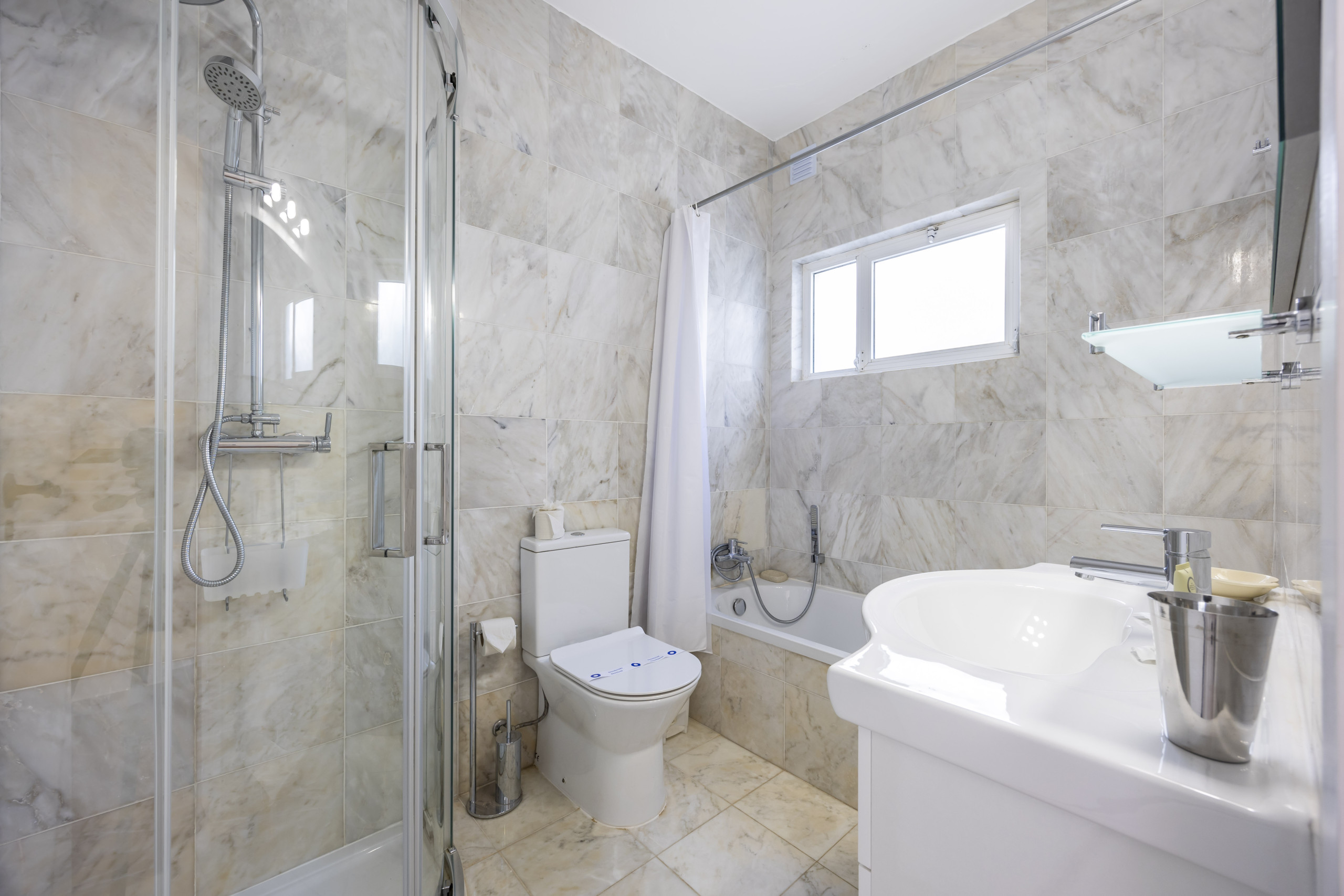 At the entrance hall, there is a common bathroom, complete, with bath and shower fittings. All rooms and living room have AC.